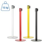 Colonnina segna percorso con peso 15 kg., gialla con base piatta. Tendi linea per creare percorsi, delimitazione di ambienti, elimina code. Nastro da 3 metri incluso vari colori. Clip di sicurezza, nastro con sistema auto frenante, retrattile. All'interno della colonnina è inserito un contrappeso per aumentarne la stabilità