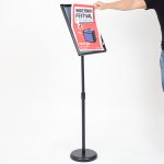 Leggio pratico e comodo grazie alla cornice orientabile e inclinabile, ed alla comoda sta telescopica che permette la regolazione in altezza. Un espositore porta avviso con cambio della grafica, protetta da foglio antiriflesso. L’espositore porta avvisi da terra è adatto per essere utilizzato all'interno di fiere, negozi, congressi, aree commerciali, showroom ed aree di accoglienza. Grazie alla sua struttura regolabile e alla cornice a scatto orientabile, si adatta perfettamente a presentazioni professionali, esposizioni temporanee o permanenti e spazi commerciali, garantendo sempre massima visibilità e praticità d’uso.