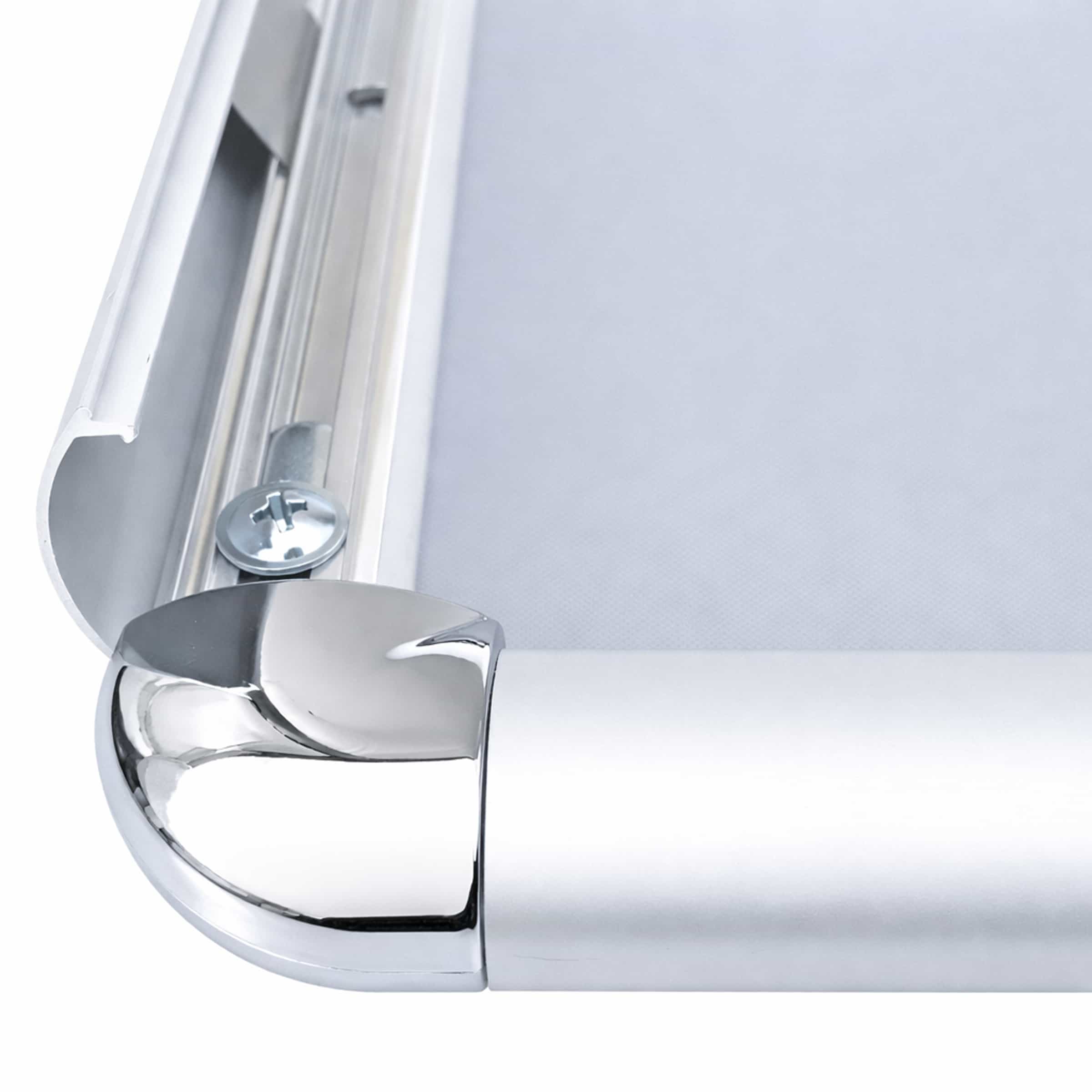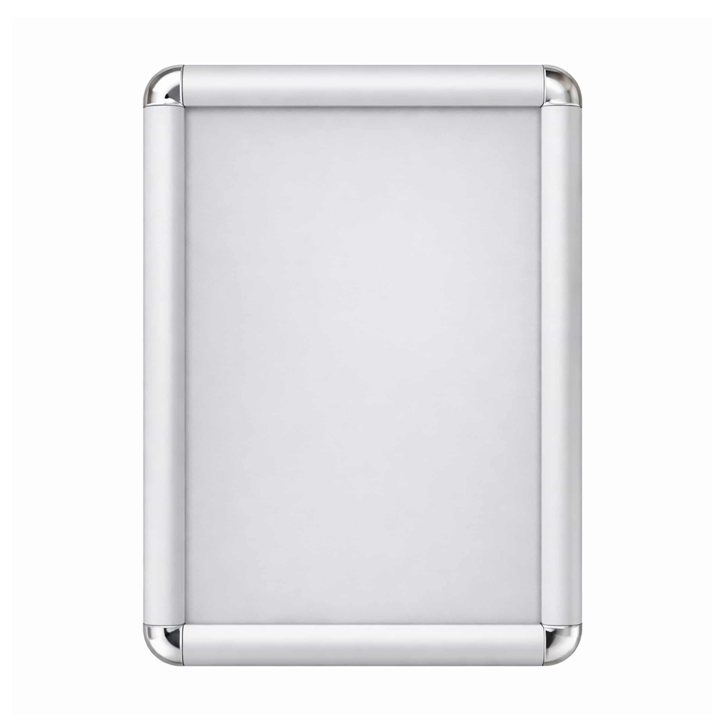 Le cornici in alluminio, cornici a scatto da parete con angolo tondo, sono costituite da un profilo perimetrale di alluminio 25 mm, e da un fondo in materiale plastico. Ideali per uffici, negozi, ed ambienti interni.