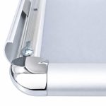 Sistema con profilo a scatto 25 mm. Le cornici a scatto da muro con apertura a scatto sono adatte per un cambio del messaggio frequente. La sostituzione del foglio è facile e veloce. Aprendo i profili di alluminio della cornice da muro è possibile inserire la nuova grafica, protetta dal foglio in PVC trasparente di protezione.