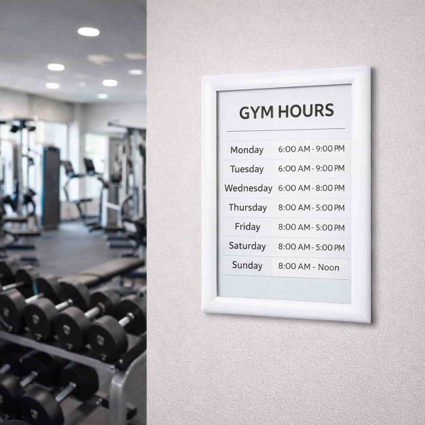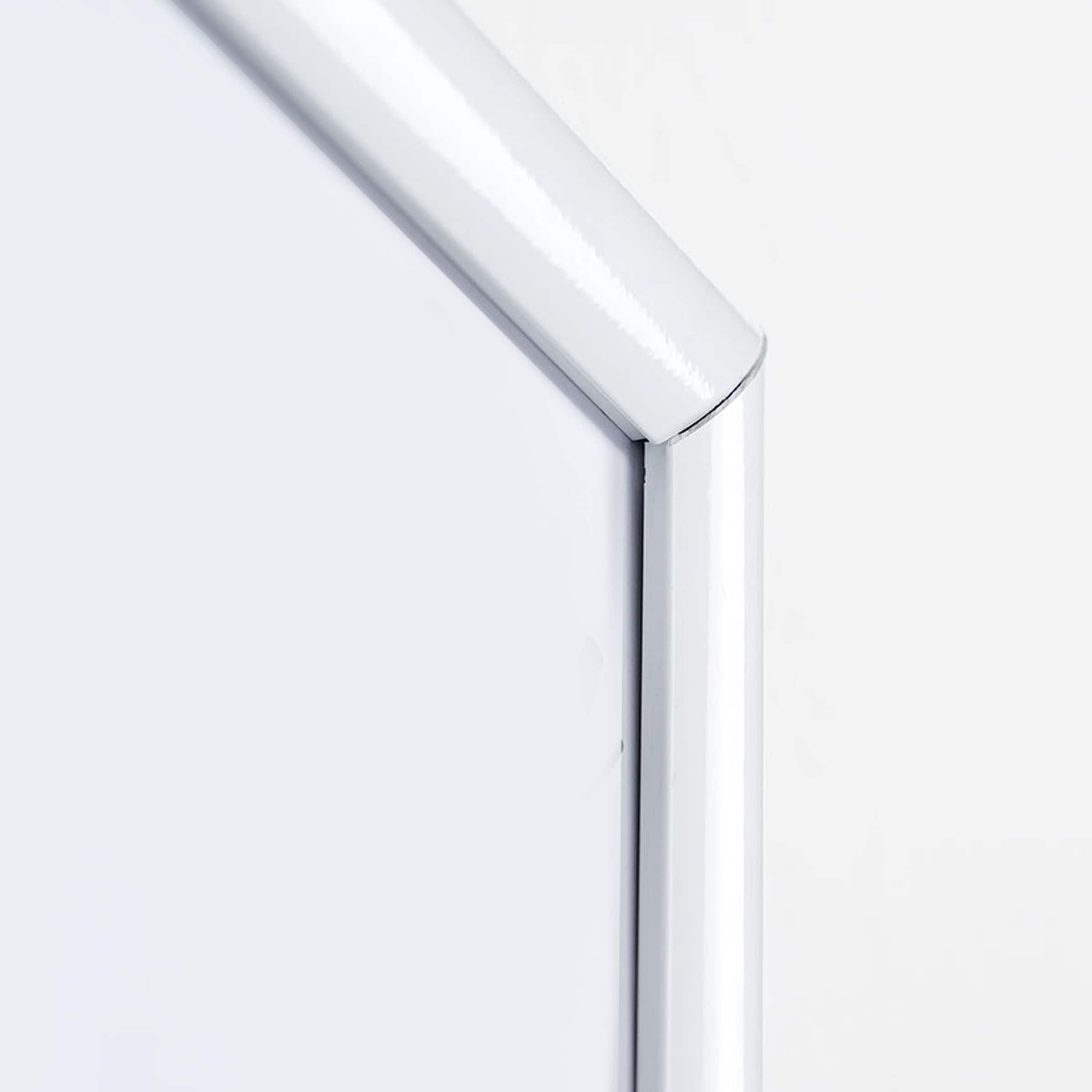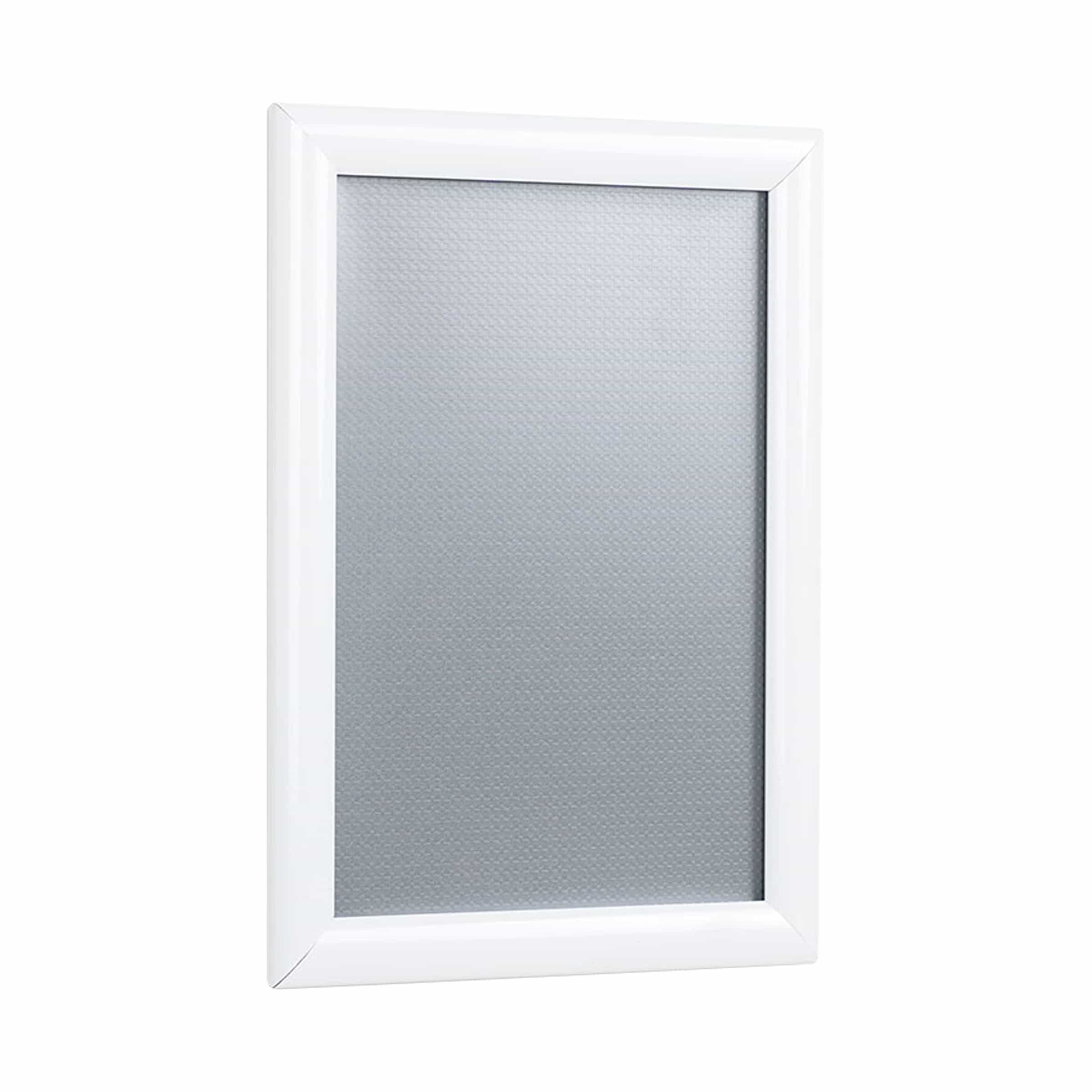 Le cornici a scatto bianche da parete con profili di alluminio con angoli a 90°, sono perfette come porta avvisi, porta manifesto, comunicazioni, all'interno di uffici, hotel, negozi e punto vendita. La finitura bianca rende la cornice adatta a qualsiasi tipo di arredamento ed ambiente interno. Scegli il formato che preferisci.