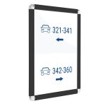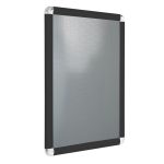 Sistema con profilo a scatto. Le cornici a scatto da muro NERE con apertura a scatto sono adatte per un cambio del messaggio frequente. La sostituzione del foglio è facile e veloce. Aprendo i profili di alluminio della cornice da muro è possibile inserire la nuova grafica, protetta dal foglio in PVC trasparente di protezione.