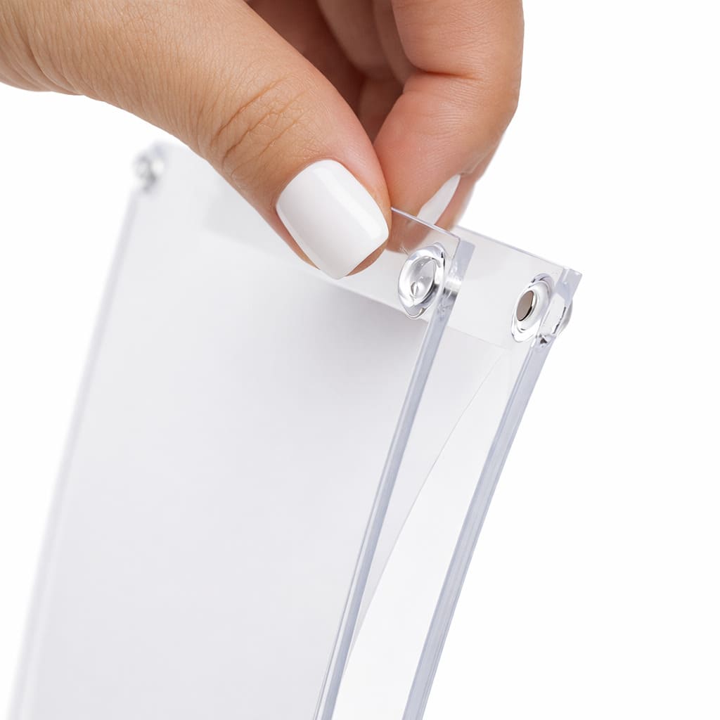 Porta avvisi trasparenti per esporre avvisi, prezzi, o altre informazioni all’interno dei negozi, supermercati, fiere o eventi. Nuovo design dal profilo curvo. L’apertura e chiusura avviene tramite tondini magneti posti sui vertici che permettono la sostituzione e l’inserimento della grafica in modo molto semplice.