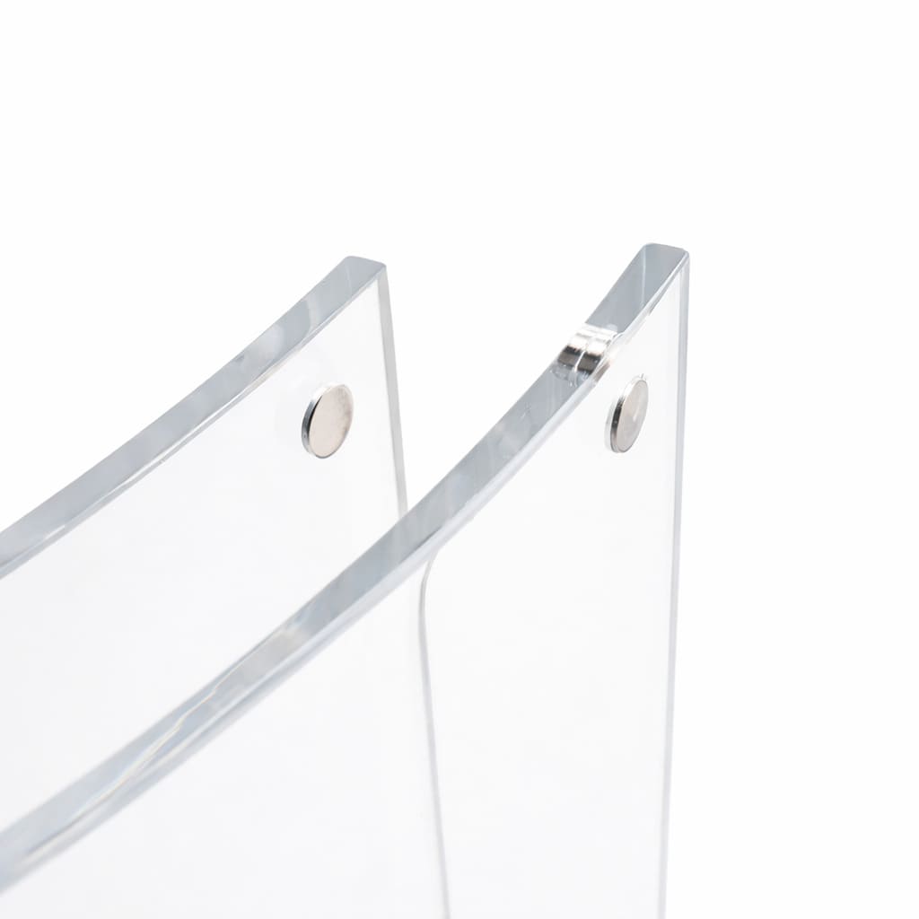 Porta avvisi trasparenti per esporre avvisi, prezzi, o altre informazioni all’interno dei negozi, supermercati, fiere o eventi. Nuovo design dal profilo curvo orizzontale.. L'apertura e chiusura avviene tramite tondini magneti posti sui vertici che permettono la sostituzione e l'inserimento della grafica in modo molto semplice.