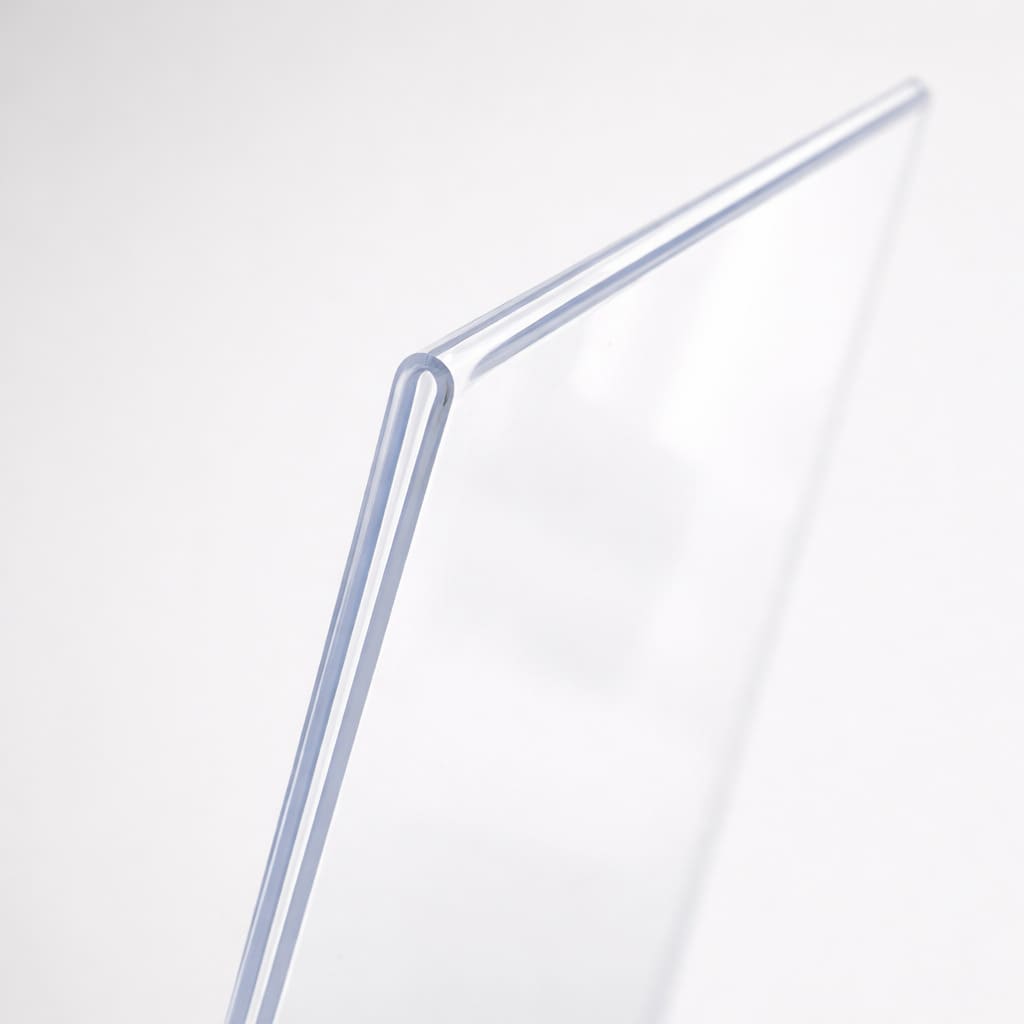 I porta avvisi da banco son o in materiale styrene trasparente in ed hanno uno spessore di 2 mm. base ad L ed con inserimento laterale del foglio.