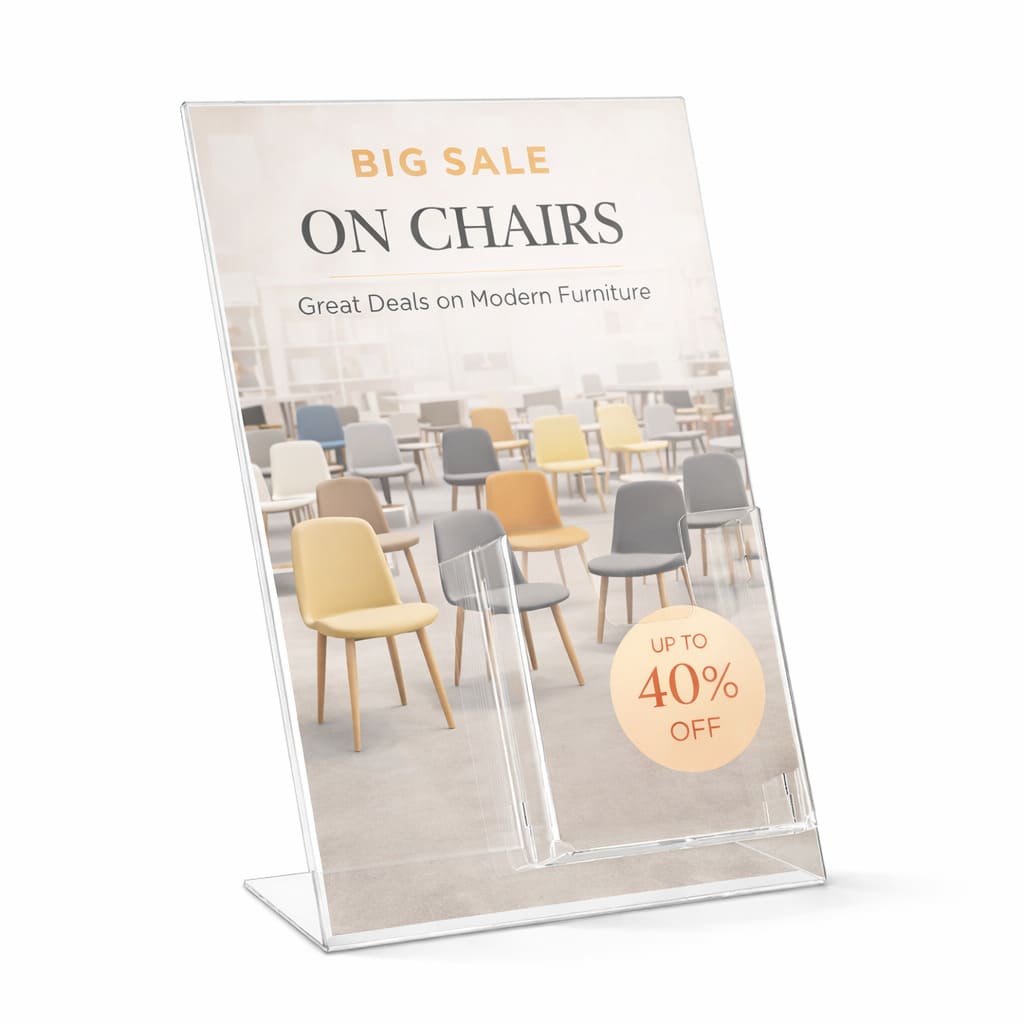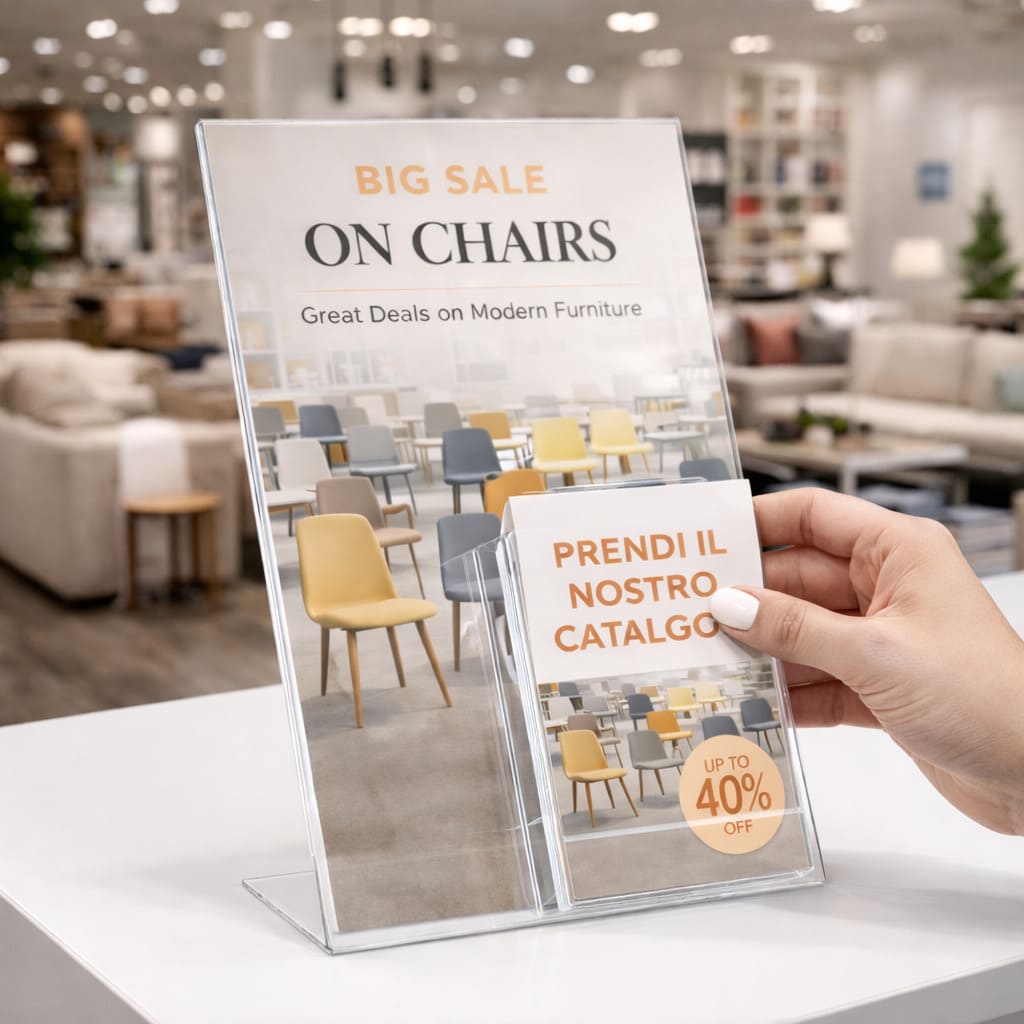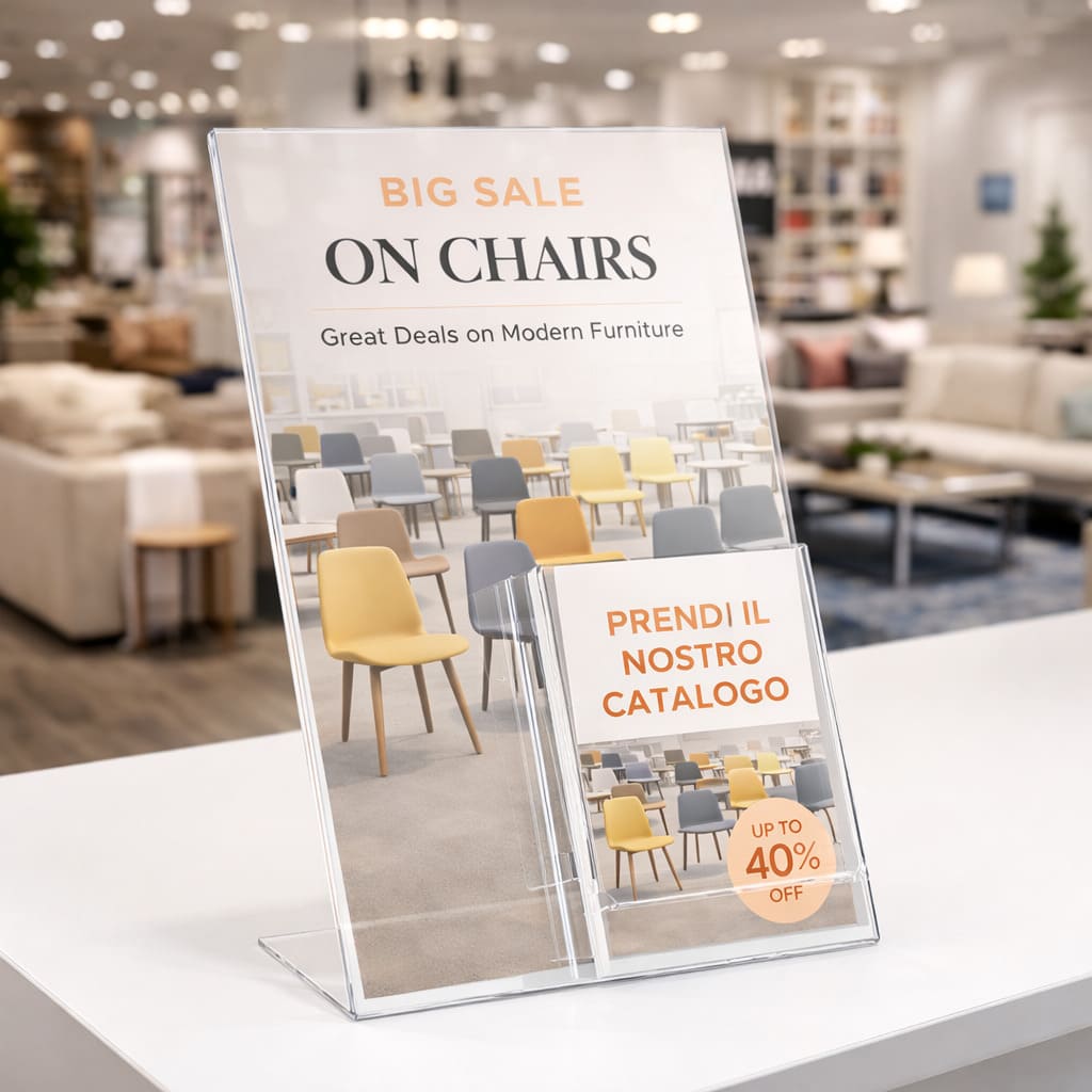 Porta avvisi trasparenti con tasca sul fronte in vario formato, per esporre avvisi, biglietti, flyer, cataloghi, o altre informazioni all’interno dei negozi, supermercati, fiere o eventi. I porta avvisi in plexiglass spessore 2 mm vengono spesso utilizzati anche come porta caratteristiche all'interno di mostre, congressi e convegni.