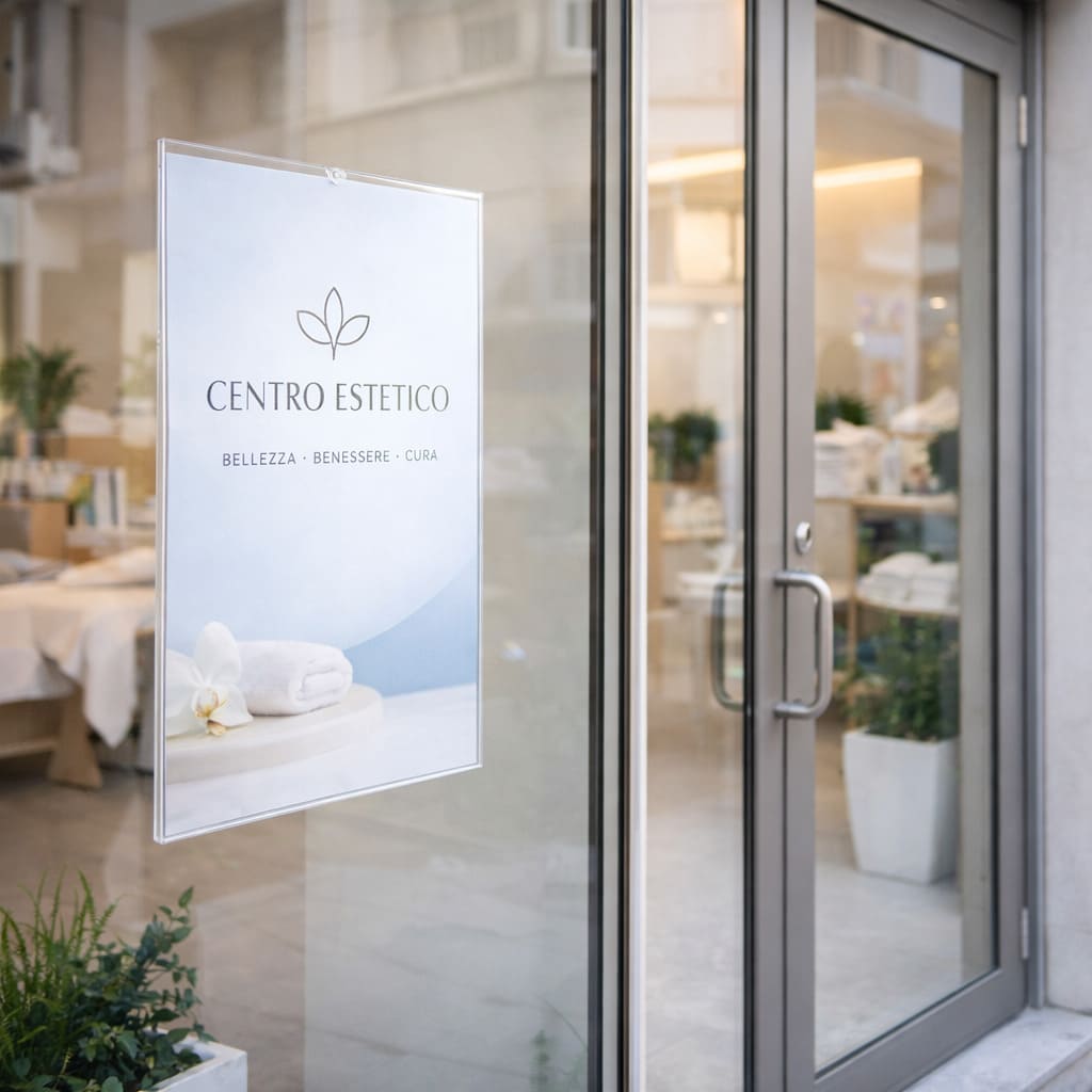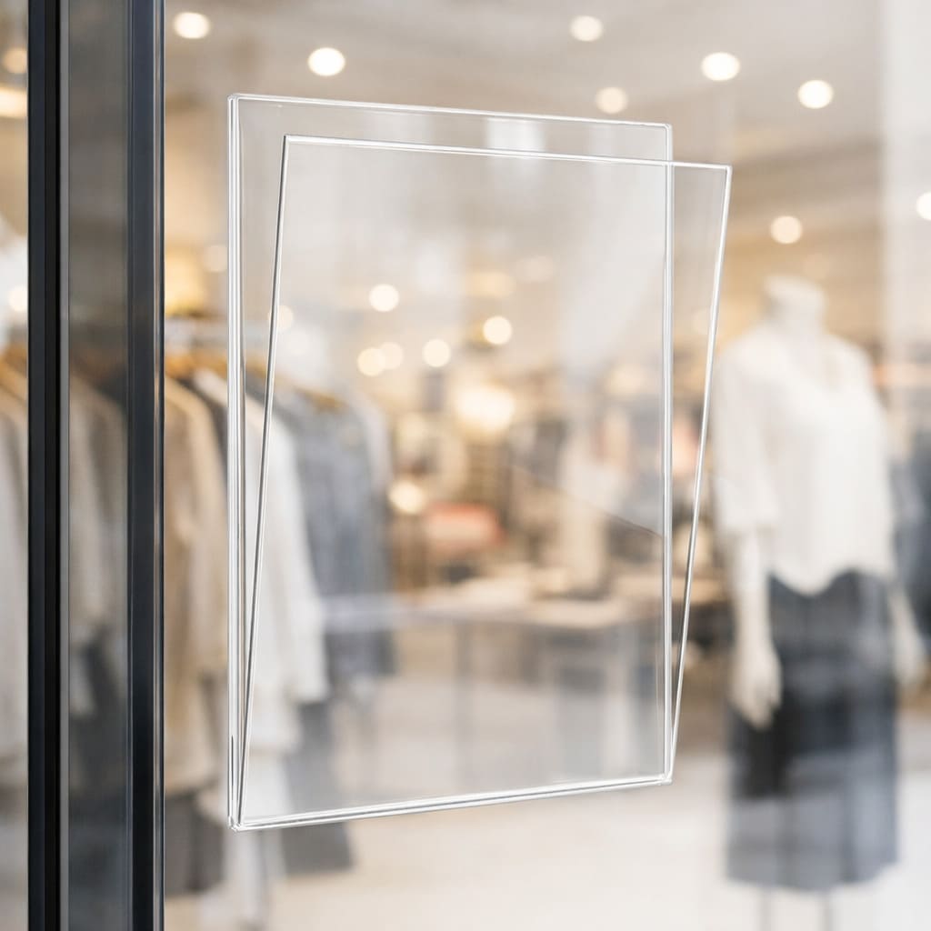 Un porta avviso adatto per applicazione su vetro di qualsiasi tipologia di negozio, dove esporre avvisi, informazioni, menu, offerte speciali ed altro ancora.