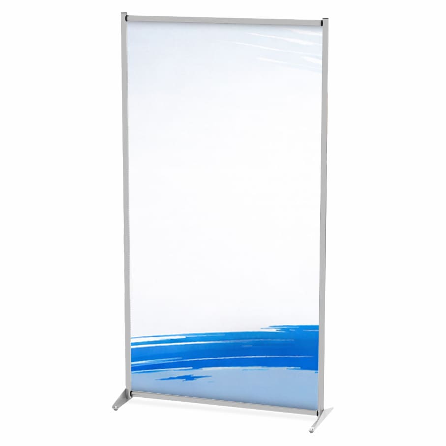 La personalizzazione con stampa sul pannello consente l'utilizzo del prodotto anche come totem pubblicitario per fiere, eventi, corner pubblicitari. Struttura con profili di alluminio diametro 30 mm, due basi portanti, e pannello. La parete divisoria può essere collocata e spostata facilmente all’interno di qualsiasi ambiente interno per creare partizioni di ambienti, separè, e partizioni temporanee di ambienti.