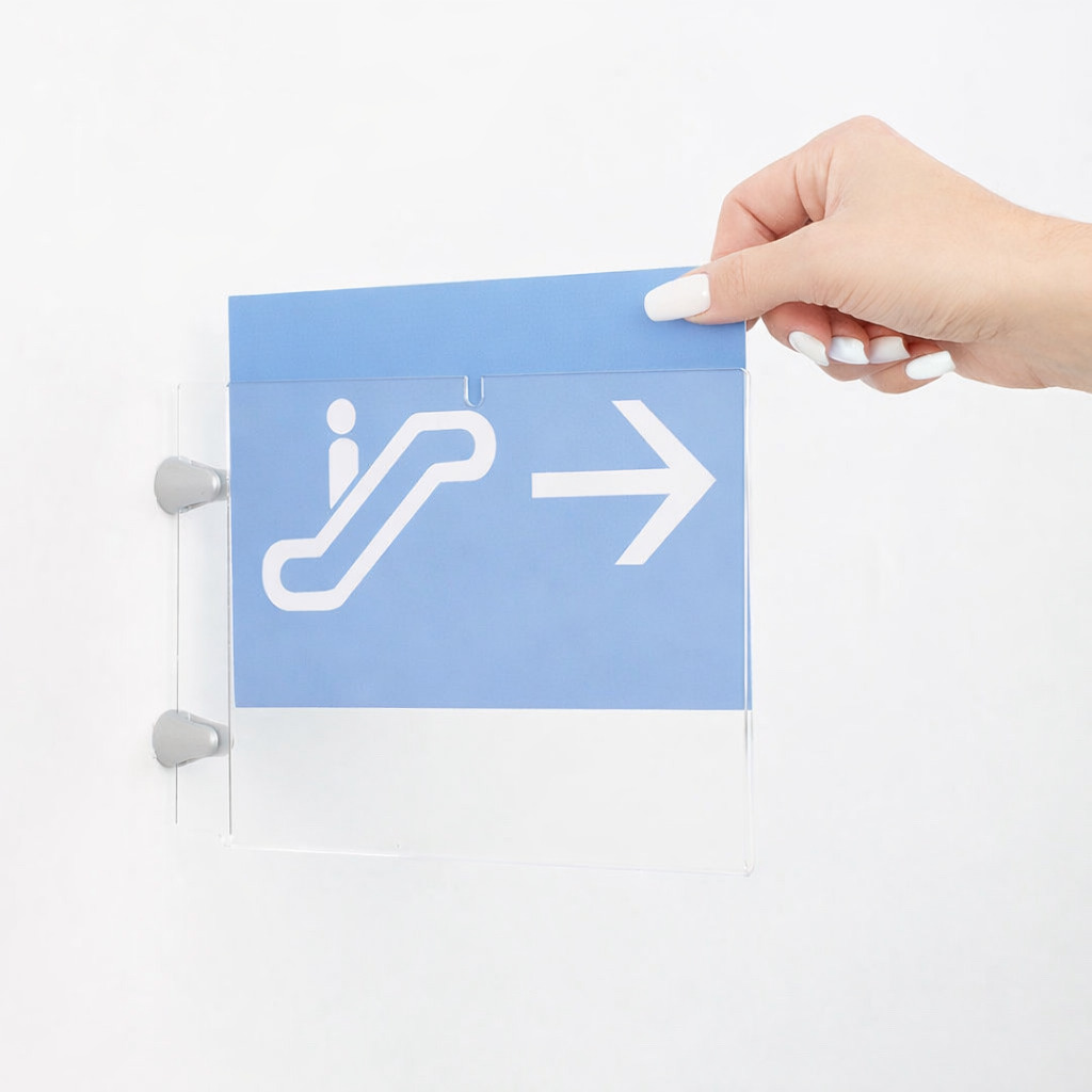 La tasche a bandiera in plexi sono adatte per esporre avvisi, informazioni, percorsi, all’interno di uffici, edifici, centri commerciali, negozi, centri congressi e convegni. Un prodotto adatto per la sostituzione frequente della grafica.