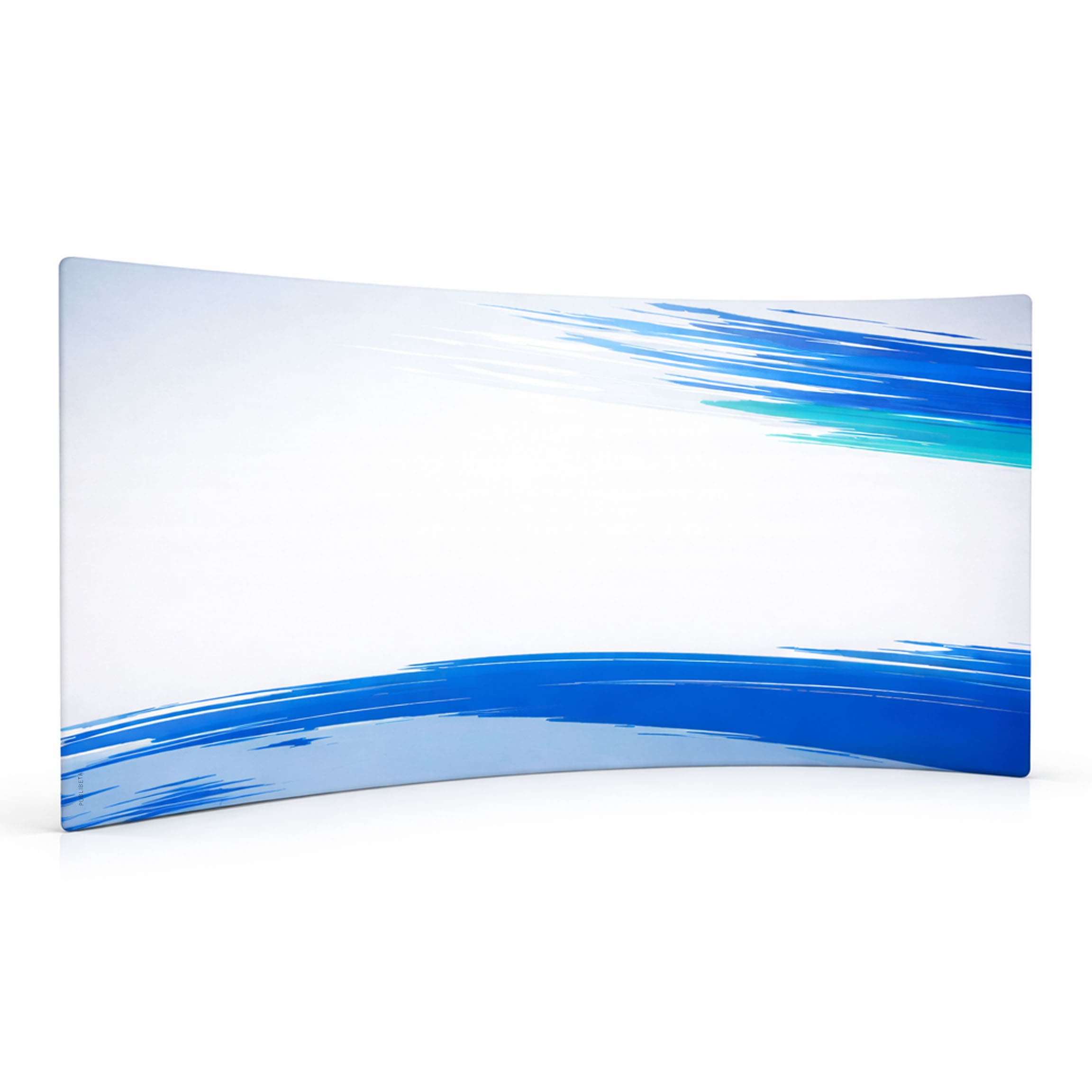 Gli stand portatili curvi esaltano il vostro messaggio pubblicitario con una stampa senza interruzioni. La struttura di alluminio è coperta della stampa e questo rende il fondale unico per la visibilità del messaggio “a tutta grafica”. La stampa è bifacciale ed è possibile stampare due soggetti differenti.
