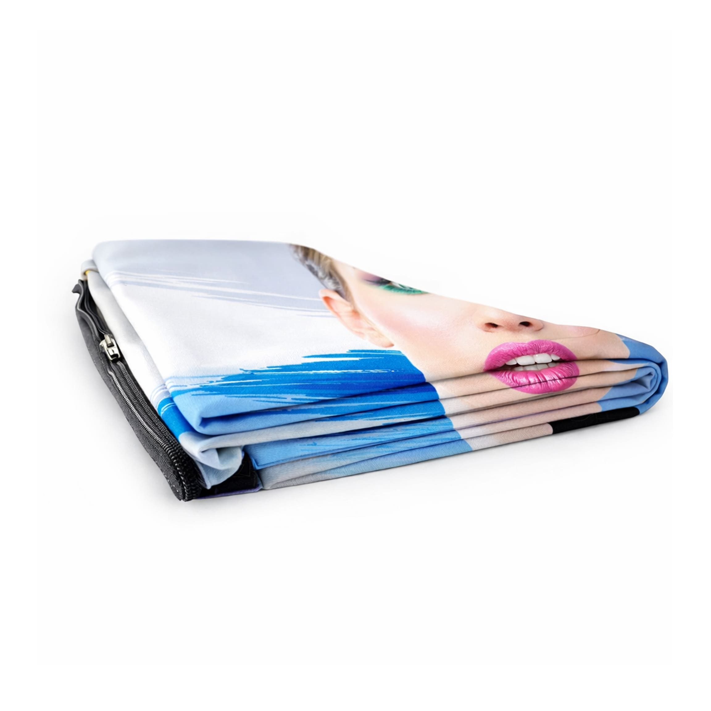 La stampa è realizzata su tessuto elastico antipiega che per le sua caratteristica “antipiega”, una volta utilizzato, può essere piegato e riposto nell’apposita borsa, e pronto per il prossimo evento.