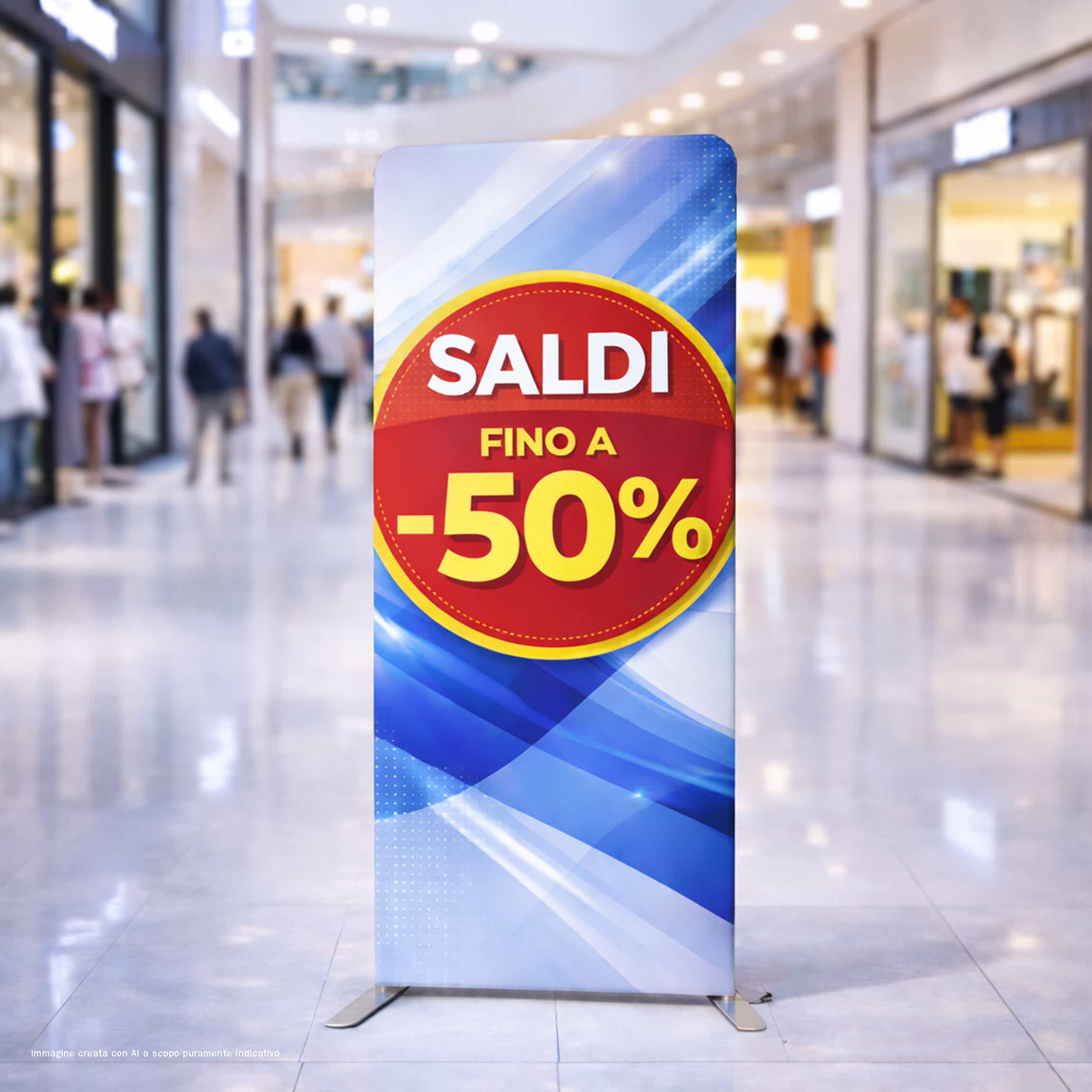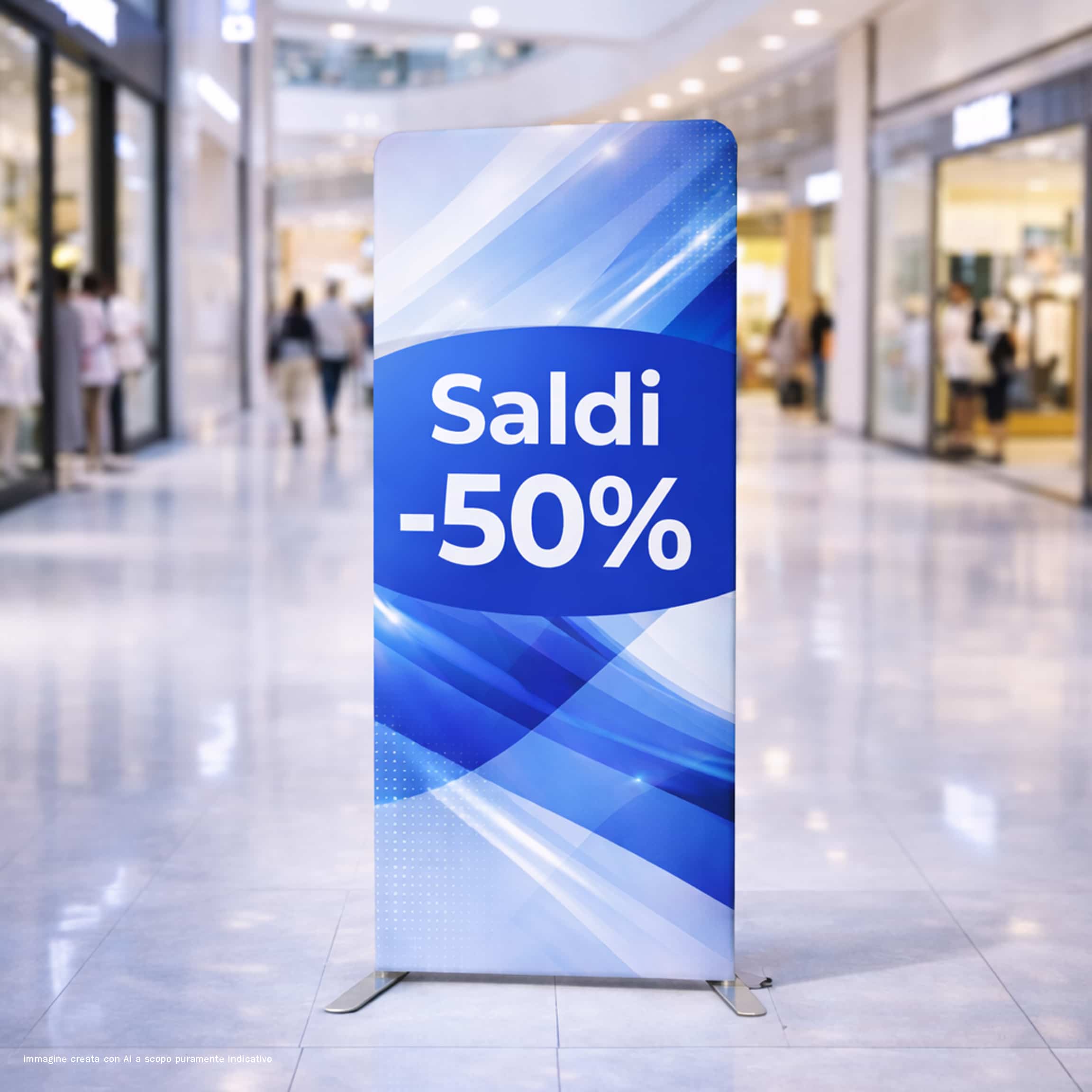 I totem portatili per fiera ed eventi, esaltano il vostro messaggio pubblicitario con una stampa senza interruzioni. La struttura di alluminio è coperta della stampa e questo rende il fondale unico per la visibilità del messaggio “a tutta grafica”. La stampa è bifacciale ed è possibile stampare due soggetti differenti.